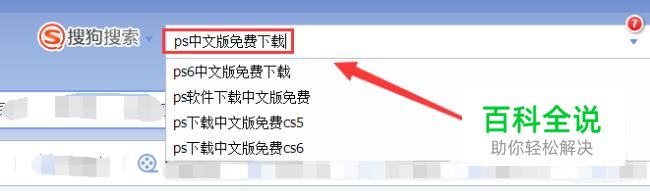 首先,打开我们的浏览器,接着在浏览器中输入“ps中文版免费下载”,如图所示。