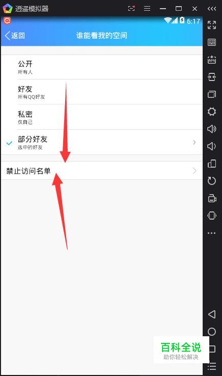 禁止访问名单点击,就是说你选择的好友不能看到你的qq空间。