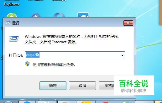 在运行的输入框中,输入“regedit”命令,进入注册表编辑器。