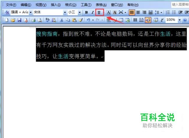 在编辑输入区里输入文字,并选择刚刚输入的文字,在上面找到添加下划线选项,如图所示: