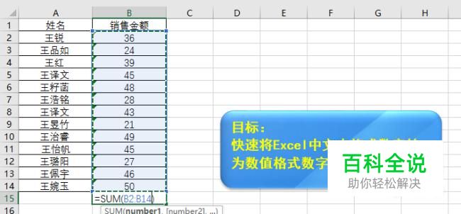 这时候显示的值就为所有数值之和(让文本数值加0以后就成为了能够计算的数值)
