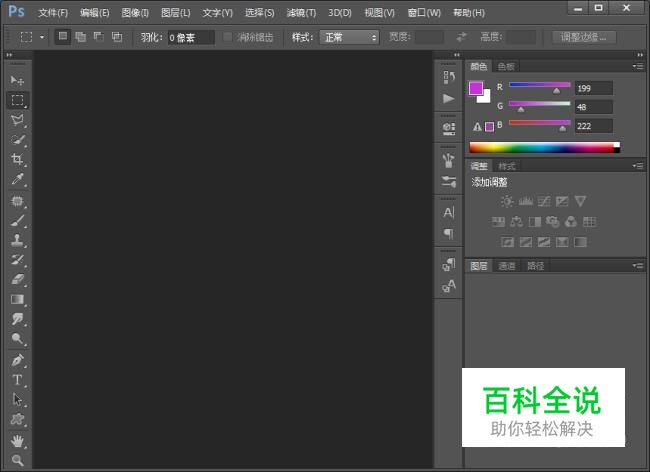 在桌面上双击Photoshop的快捷图标,打开Photoshop这款软件,进入Photoshop的操作界面,如图所示: