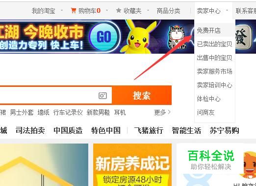 登录淘宝网页,在淘宝首页选择卖家中心。