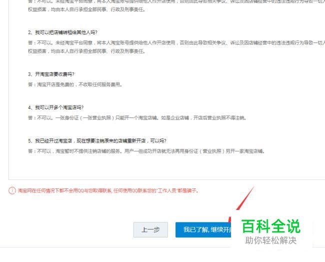 之后阅读一下相关的规则,然后点击我已了解,继续开店。