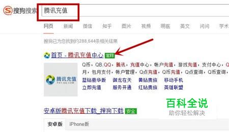 首先我们打开浏览器,在搜索引擎上输入“腾讯充值”,并搜索,如图所示。