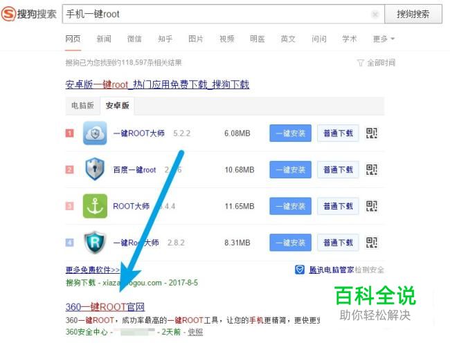 打开搜狗搜索,输入手机一键root关键字。