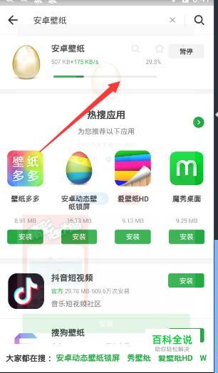 安卓手机的APP平台很多,这里选择的是豌豆荚,打开豌豆荚,搜索安卓壁纸。