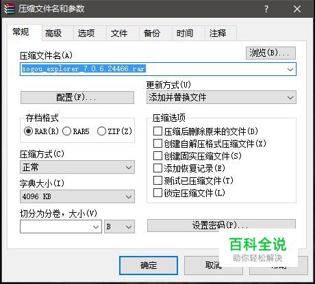 选择一下”存档格式“。在右边的”创建自解压格式压缩文件“选项前打上勾。