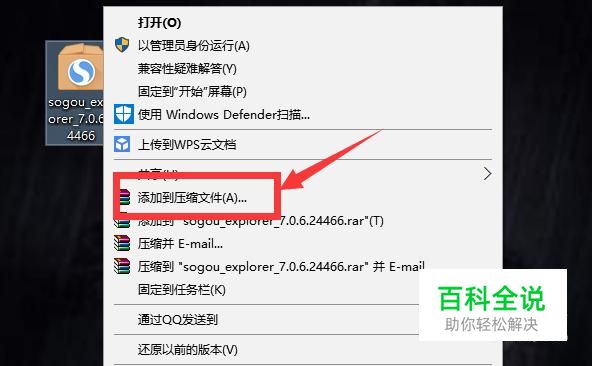 选中桌面上的软件。然后,右击,点击列表中的”添加到压缩文件“。