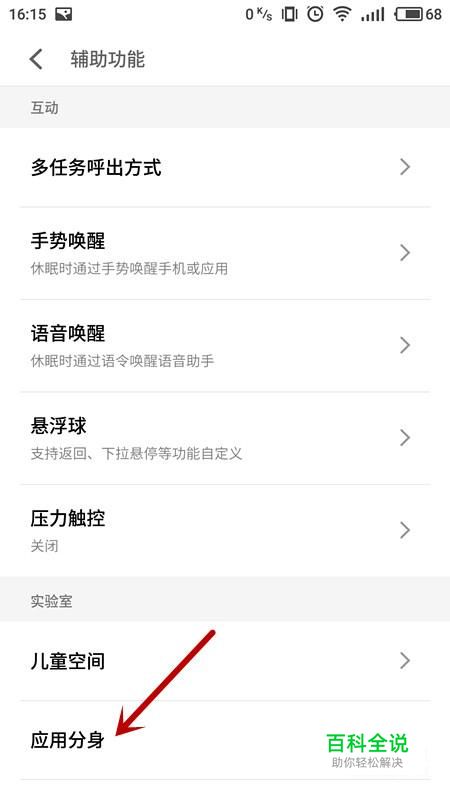 在辅助功能中选择“应用分身”