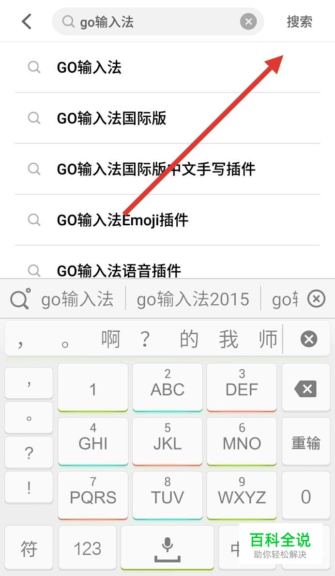 打开手机,点击手机应用商店,在打开页面输入go输入法,点击搜索。