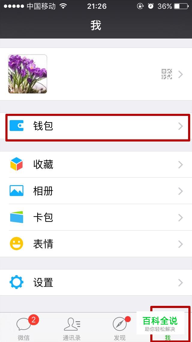 打开微信,然后下方的“我”,然后点击“钱包”;