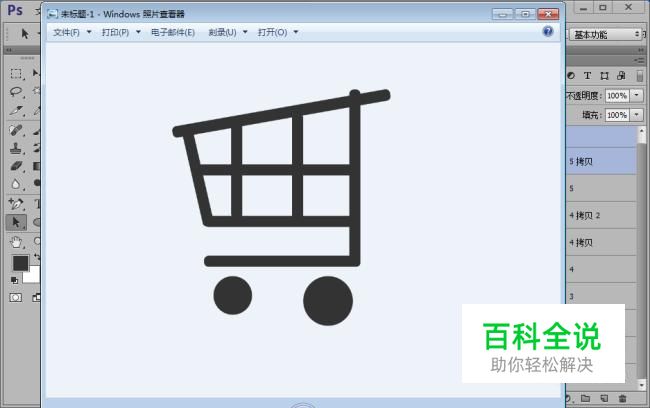 然后,我们画出购物车的轮子,关闭背景图层显示看一下效果,如图。