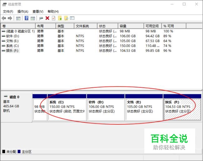 进入到磁盘管理界面就可以看到很多个磁盘分区,都是要GB大小级别的,如图。