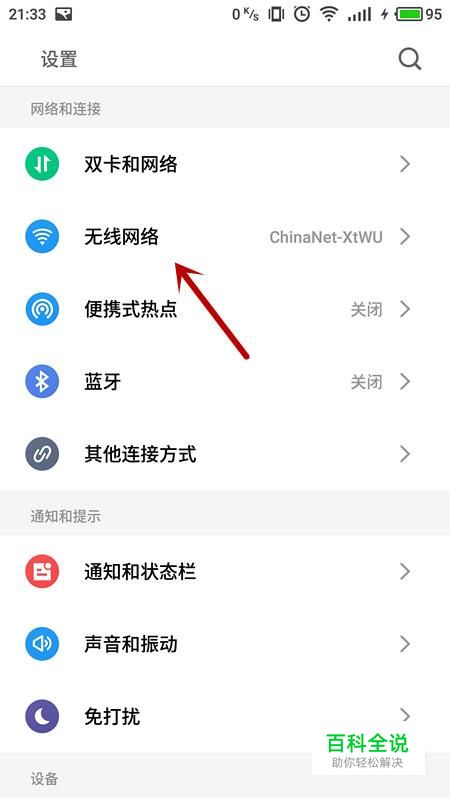 进入手机设置界面,选择“无线网络”
