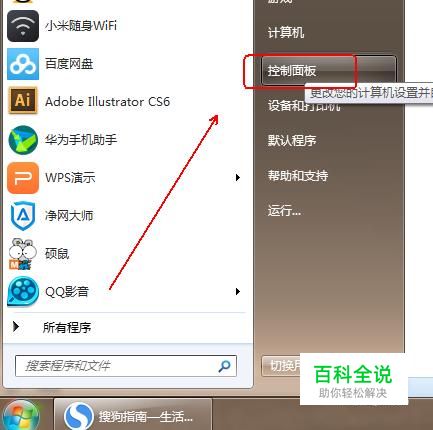 在电脑桌面的左下角点击“win”图标并在弹出的菜单列表中点击“控制面板”选项。