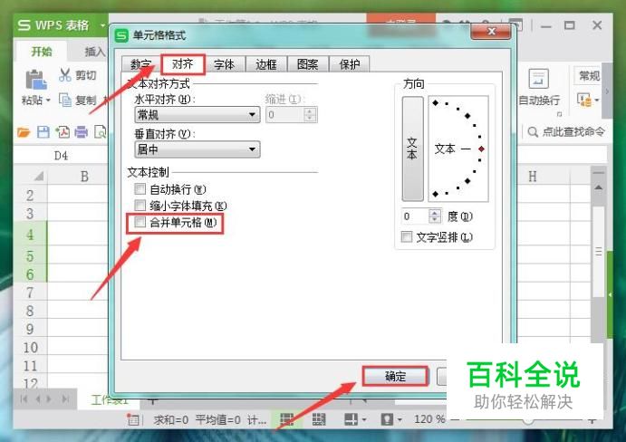 在新弹出的“单元格格式”对话框中选择“对齐”,在下方文本控制中找到“合并单元格”选项,勾选前面的小方框,如图所示: