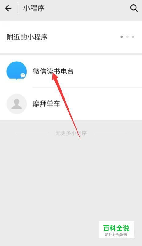 进入到小程序按钮后会进入到如图所示,此时我们单击”微信读书电台“按钮。