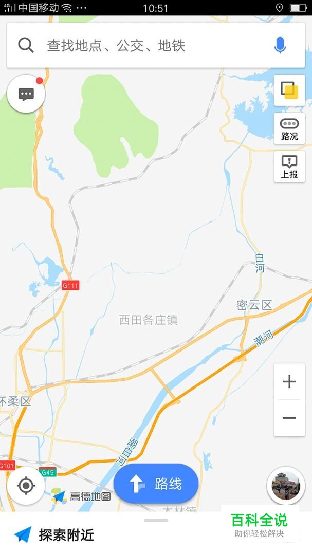 之后我们点击高德地图左下角的探索附近,如图所示。