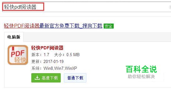 刚开始先要把pdf阅读器下载下来,我们可以在搜狗浏览器中去搜索关键词“轻快pdf阅读器”然后选择一个你喜欢的下载就可以了。
