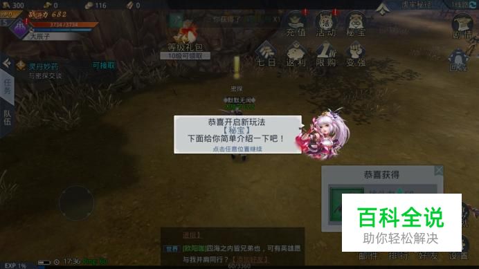 在游戏界面上方选择“秘宝”进入活动界面。