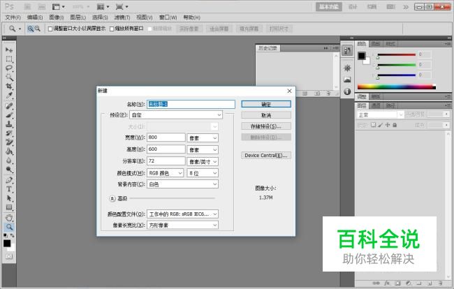 首先新建一块画布,分辨率自设,背景色设置为白色,其他选项保持默认。