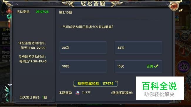 答对之后会获得较多的专属经验。