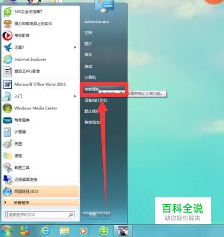 点击桌面上面的windows图标,弹出一个菜单,在菜单中找到控制面板,点击打开控制面板。