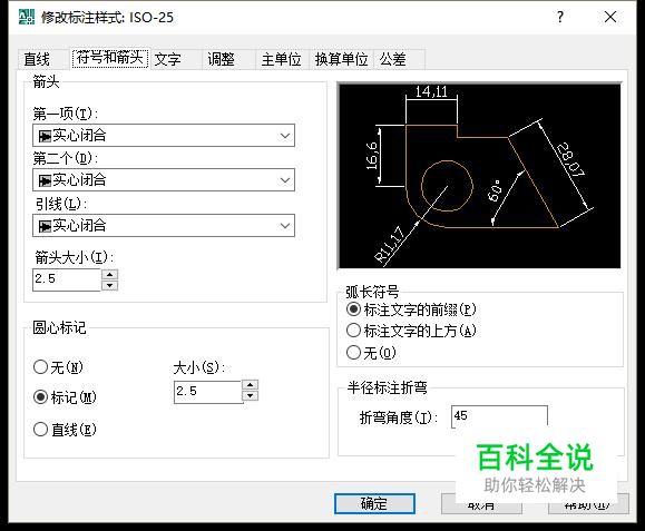 把箭头的第一项,第二个,引线都选择为建筑标记。下面的箭头大小设置一个合适的大小,小编这里设置为10.