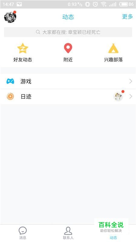进入手机QQ主界面,在下方菜单栏中选择“动态”