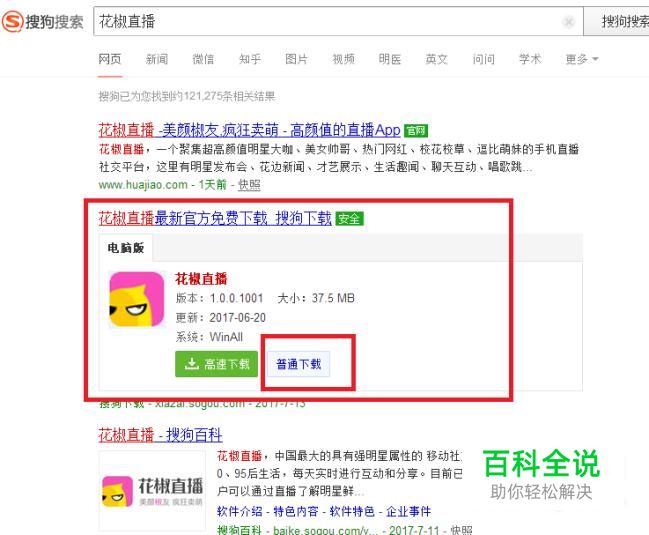 输入我们要下载的花椒直播,选择普通下载。