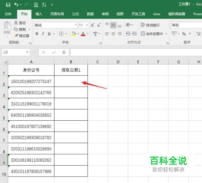 在B2单元格中输入公式=DATE(MID(A2,7,4),MID(A2,11,2),MID(A2,13,2))即可提取出出生日期
