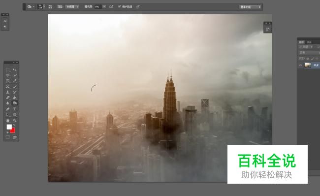 将背景图层新复制一层,将图像向上移动这样即使画面被裁剪也不会裁掉主要元素。我们这里主要元素是建筑…
