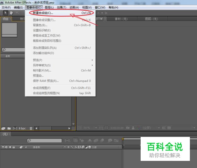 通过执行命令“图像合成>新建合成组”选项,快速建立一个新的合成对象。