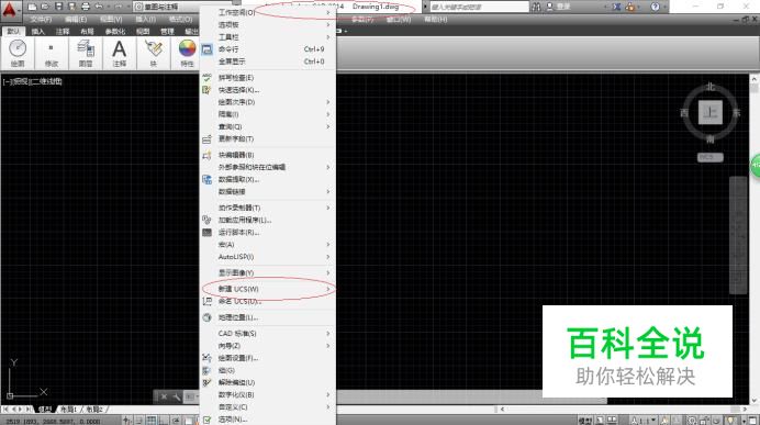 如图所示,唤出系统菜单栏。选择"新建UCS"项,下步将进行创建用户坐标系的操作。