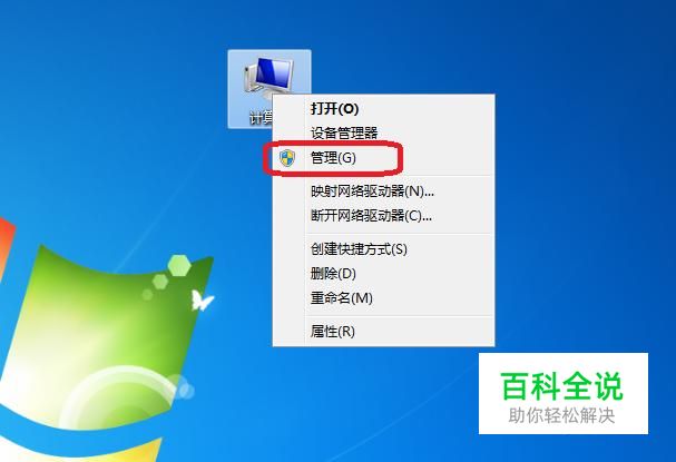 首先,我们打开电脑,然后,右键单击计算机,选择“管理”。