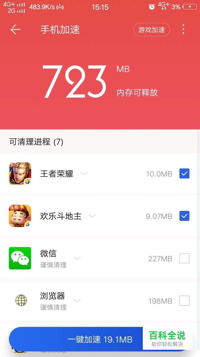 紧接着系统就会扫描出可以释放的垃圾,我们再点击下方的一键加速。