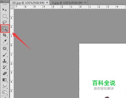 使用ps将我们的图片打开,然后在工具箱内找到魔术棒工具,如图所示: