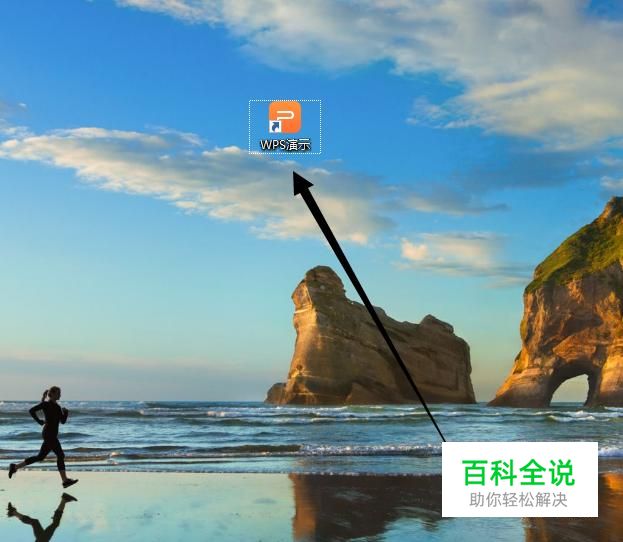 打开电脑,找到WPS演示,点击并进入,如图所示。