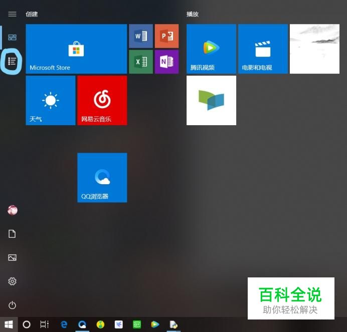 首先打开win10图标,找到最左侧的应用菜单,点击进入