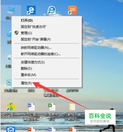 打开电脑,右击一下,选择“属性”,点击并进入,如图所示。