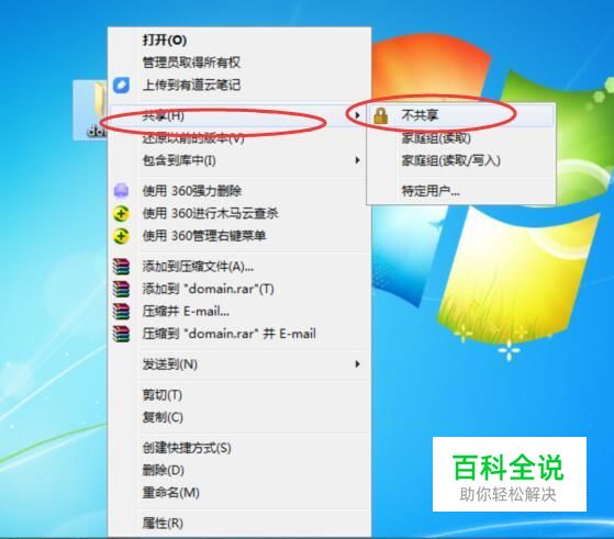 不共享 右击文件夹,然后选择【共享】----【不共享】即可,如下图所示: