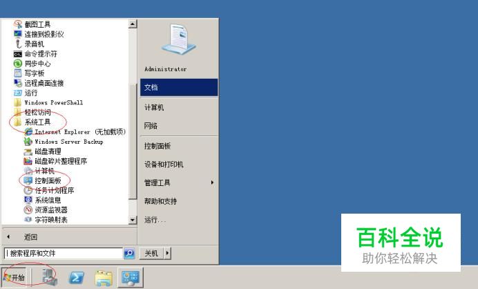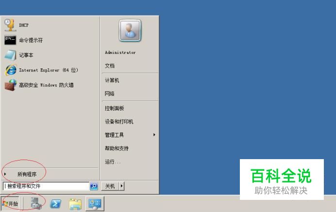 启动WINDOWS SERVER 2008 R2操作系统,点击任务栏"开始"按钮。
