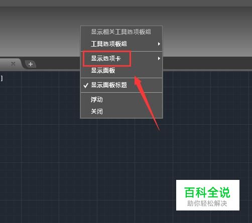 我们在上面单击鼠标右键,在右键菜单那里找到找到显示选型卡选项,如图所示:
