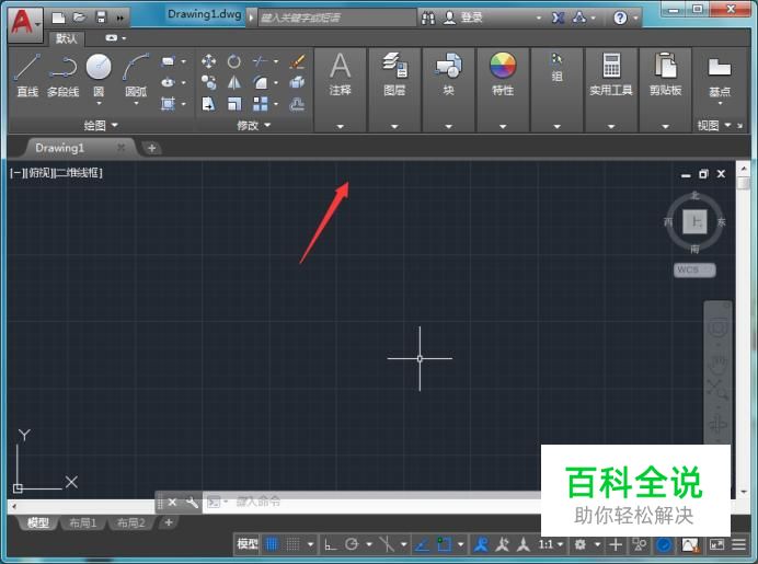 首先我们打开CAD2018,再打开的界面内我们就看不到菜单栏了,如图所示: