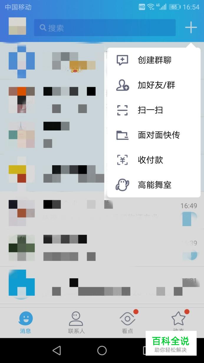 进入手机QQ后,点击右上角的“+”进入,点击“扫一扫”。
