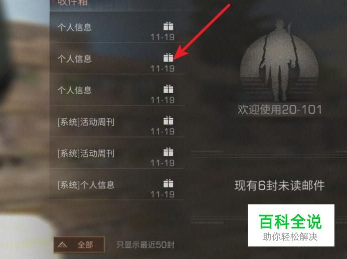 先选择一个邮件,右侧有一个邮箱物品,里面的物品有详细信息。