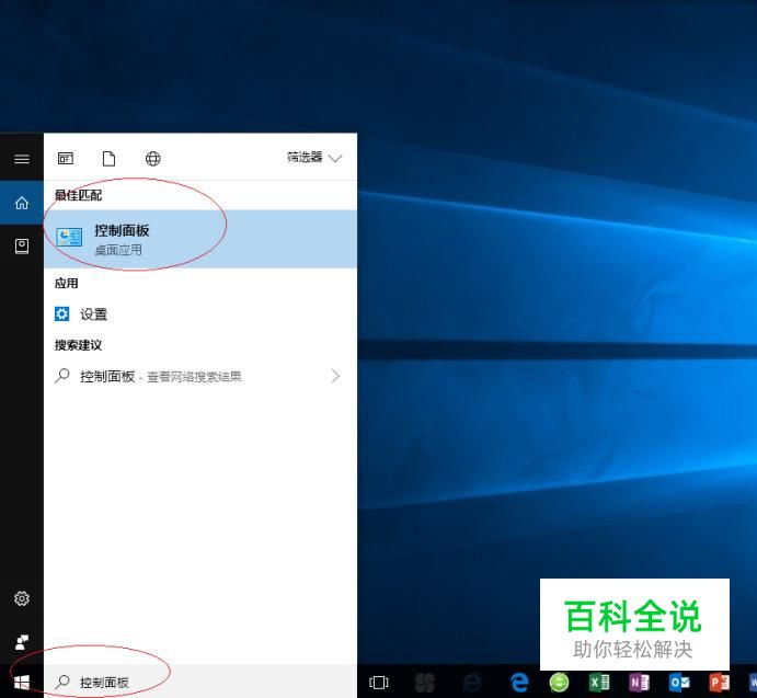 搜索框输入"控制面板",点击"最佳匹配→控制面板"项。