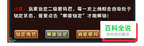 战斗吧主公二级密码系统说明: 战斗吧主公二级密码系统可以很好防止账号信息泄露导致,角色物品丢失问题! 二级密码功能可以在游戏中对角色进行锁定,此状态中玩家将不能使用以下功能: 1.出售物品 2.消耗紫色以上的装备材料进行附魔。 3.联盟的相关操作:退出联盟,让位盟主,任命职位,撤销职位,驱逐成员。 4.手动刷新各种商店。