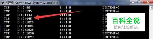 先点击开始——在运行中输入CMD,找到CMD,右键选择【以管理员身份运行】。 然后输入netstat -an回车 查看当前端口侦听状态,可以看到此时445端口处于侦听状态。